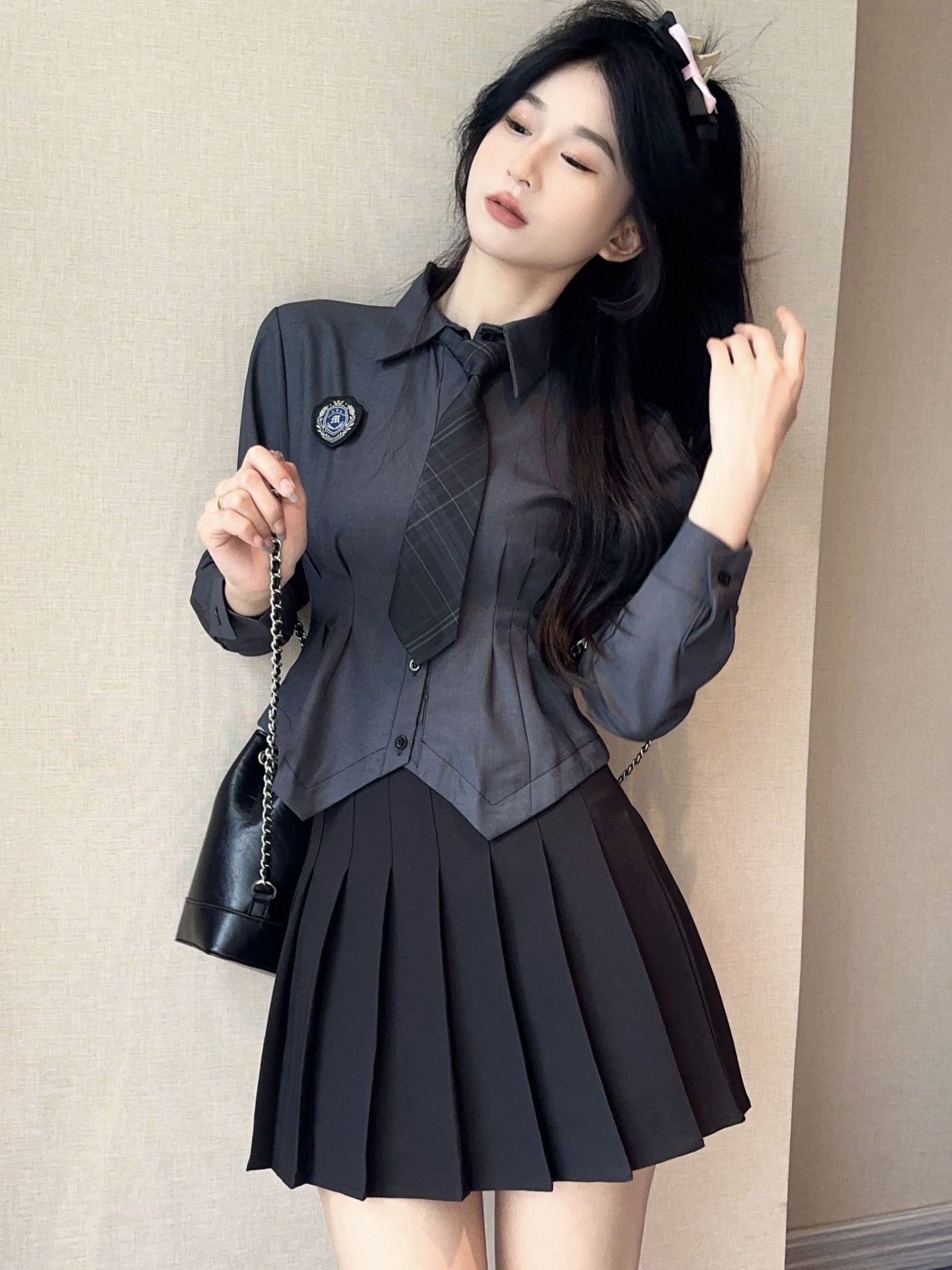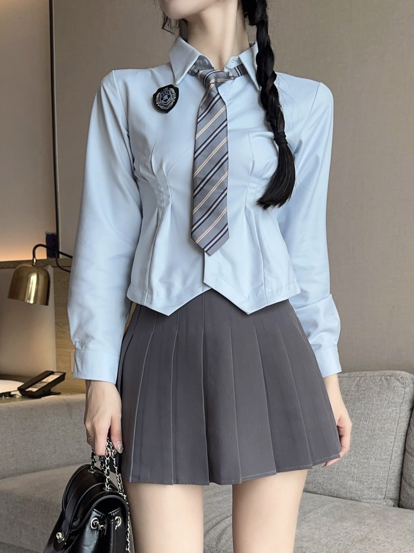 Chemise cintrée JK, jupe plissée à manches longues pour femme, tailleur uniforme.